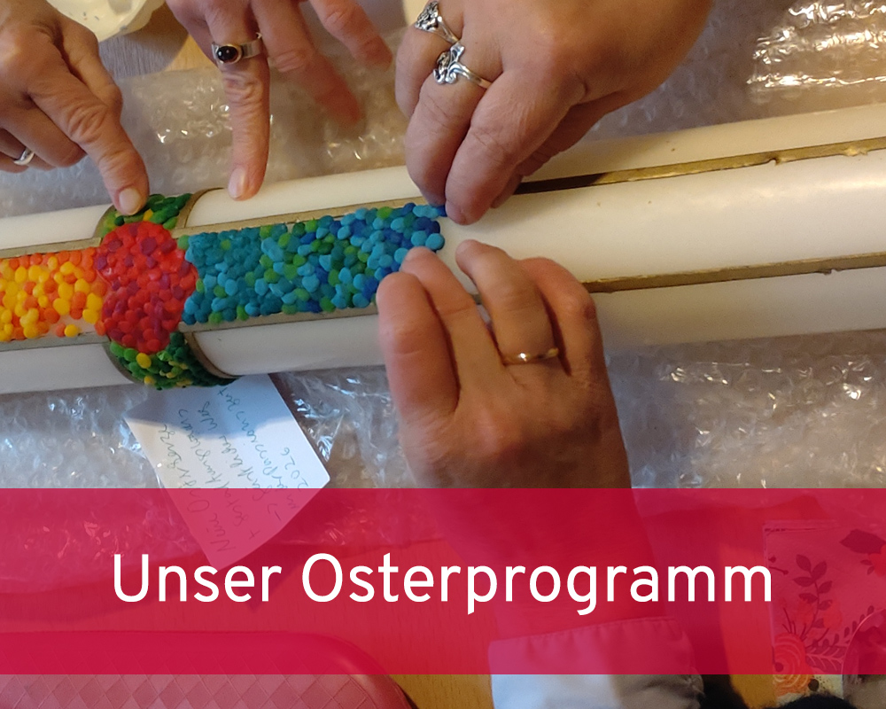 Wir gestalten gemeinsam die Osterkerze und Hoffnungssteine für den Osterpilgerweg.